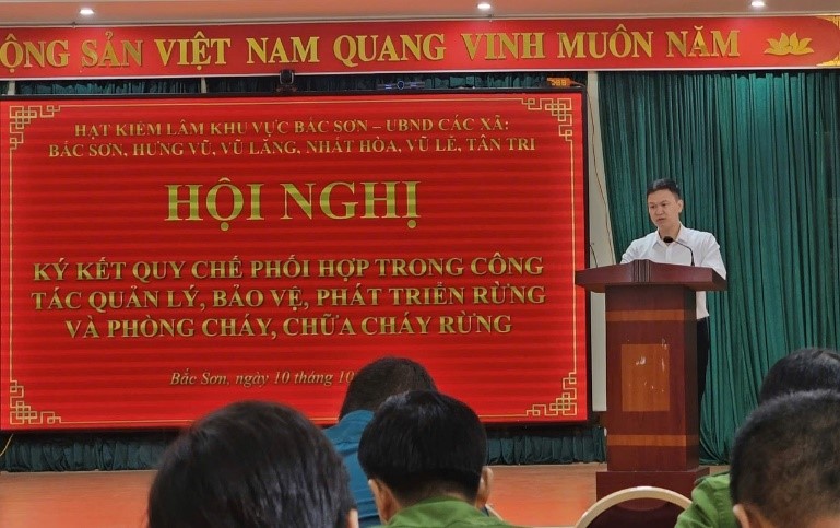 Phát biểu chỉ đạo tại Hội nghị đồng chí Nguyễn Hữu Hưng, Chi cục trưởng Chi cục Kiểm lâm tỉnh Lạng Sơn đã ghi nhận Hạt Kiểm lâm khu vực Bắc Sơn đã rất tích cực, chủ động phối hợp với UBND các xã để kịp thời tổ chức thực hiện có hiệu quả các nhiệm vụ thuộc lĩnh vực lâm nghiệp, kiểm lâm ngay sau khi thực hiện chính quyền địa phương hai cấp; đồng chí cũng nhấn mạnh, khẳng định việc ký kết Quy chế phối hợp có ý nghĩa quan trọng, góp phần nâng cao hiệu quả công tác quản lý, bảo vệ và phát triển rừng, phòng cháy chữa cháy rừng trên địa bàn.