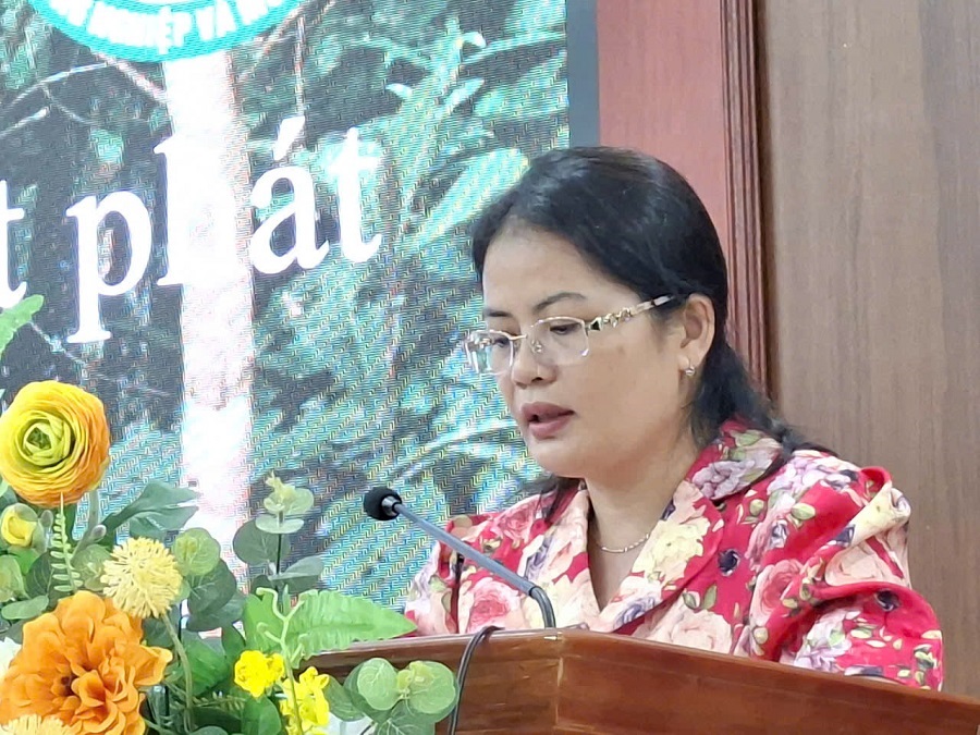 Đồng chí Đinh Thị Thu - Phó Giám đốc Sở Nông nghiệp và Môi trường tỉnh Lạng Sơn phát biểu tại Hội nghị